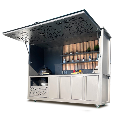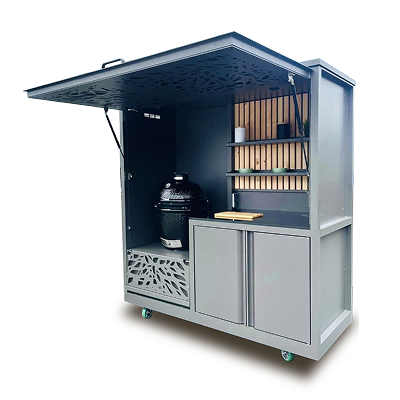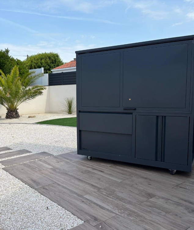 Oui, la cuisine box a été pensée pour être entièrement nomade. Grâce à ses 4 roulettes robustes, elle se déplace facilement selon vos besoins ou vos envies. C’est l’un de ses principaux atouts : vous pouvez la positionner où vous le souhaitez, sur une terrasse, dans un patio ou sous un abri, tout en conservant la même solidité et la même qualité d’usage.