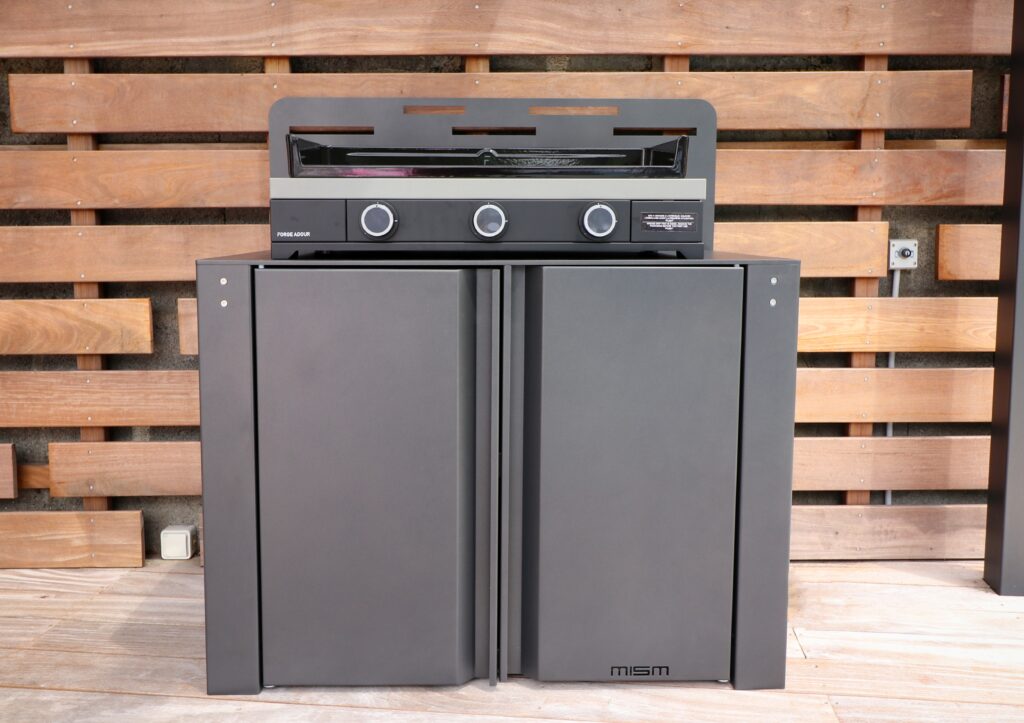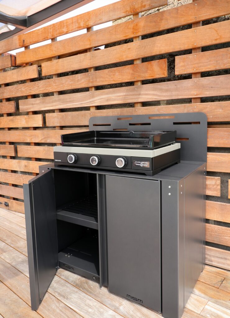 Parce que chaque projet est unique, MISM propose la Cuisine Box en version personnalisable : coloris, agencement intérieur, finitions, ou intégration d’équipements complémentaires (plancha, évier, rangements…).